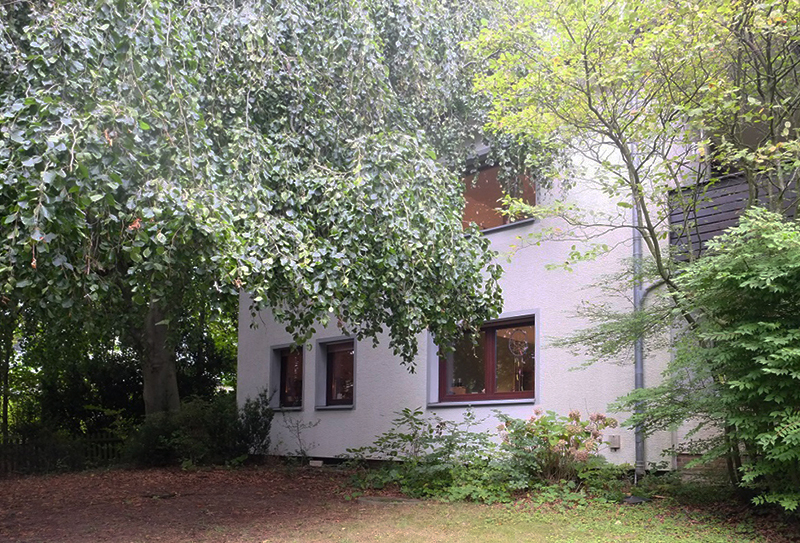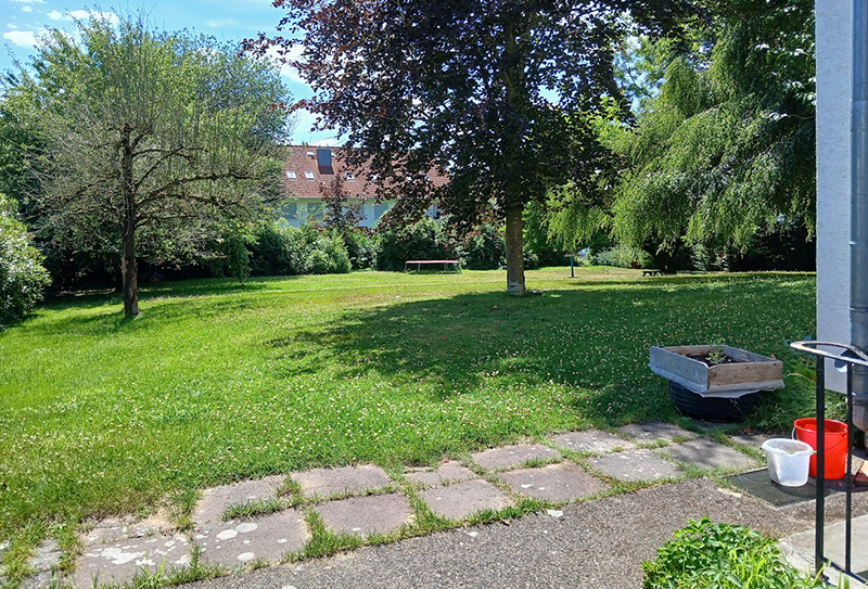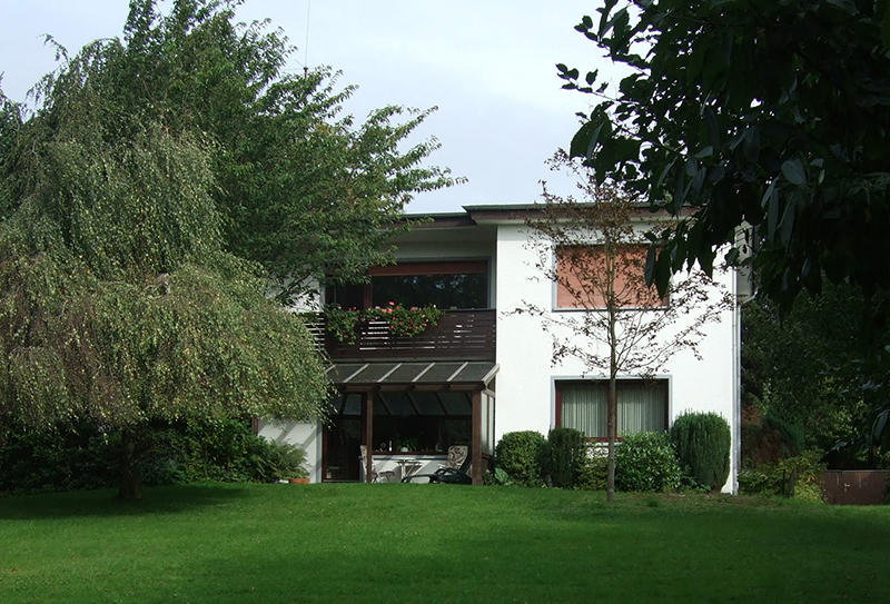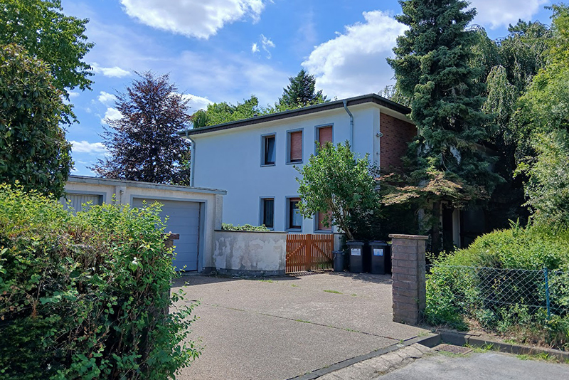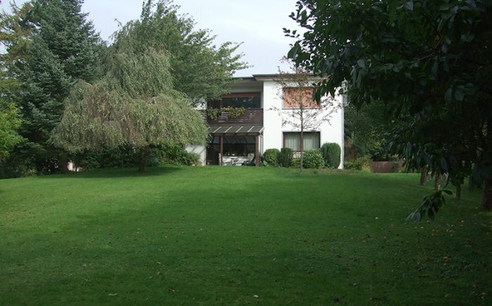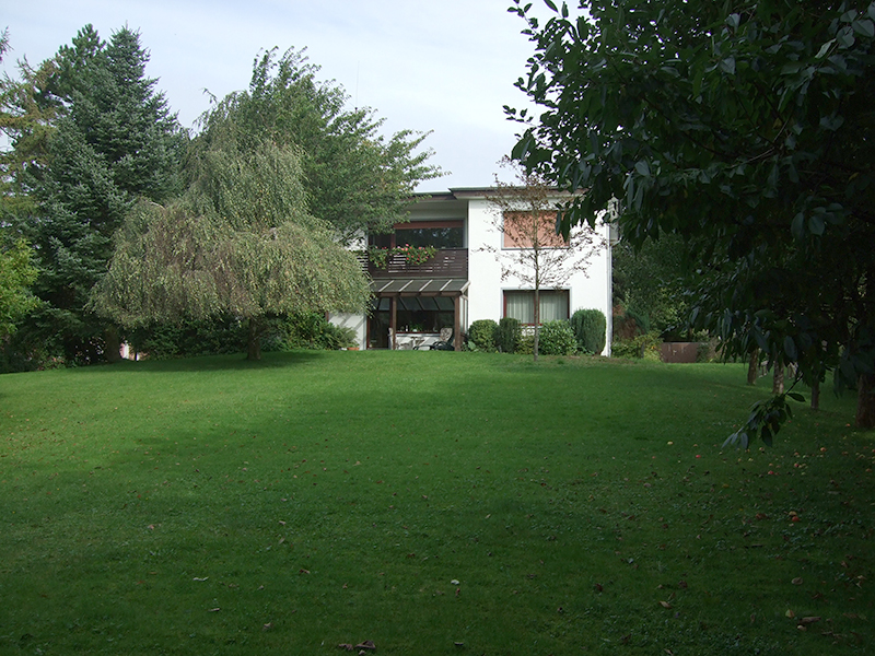 Das Wohnhaus steht im nördlichen Bereich eines großen, nach Süden hin leicht abfallenden Grundstücks. Die südliche Grundstücksfläche kann mit einem gültigen Bebauungsplan ebenfalls mit einem Wohnhaus mit zwei Vollgeschossen bebaut werden.