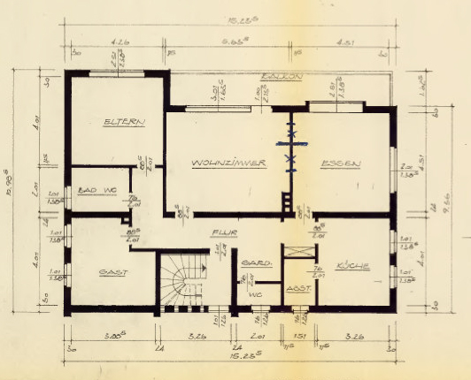 Alle Räume haben große Fenster und sind gut geschnitten. Die Wohnräume sind optimal ausgerichtet, hautsächlich nach Süden. Im Norden befinden sich das Treppenhaus und Nebenräume.