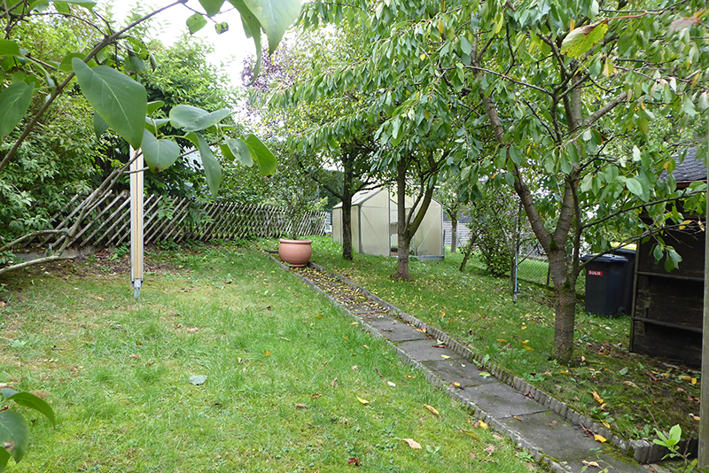 Im hinteren Garten ist eine Werkstatt und ein überdachter Sitzplatz vorhanden. Obstbäume und -sträucher und ein Gewächshaus versprechen gute Ernte im eigenen Garten.